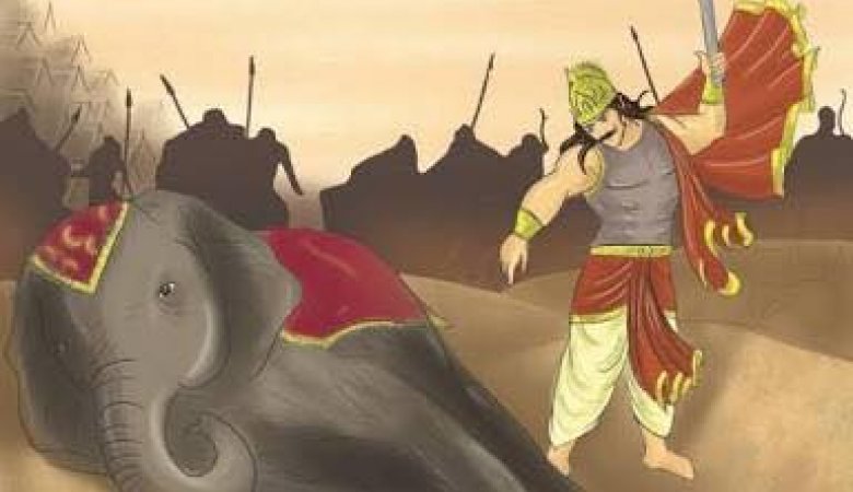 Teriakan yang sengaja ia kumandangkan agar didengar oleh Mahasenapati Drona, yang memiliki putra kesayangan yang kebetulan bernama sama, Aswatama. Guratan karma masa lalu telah membuat seekor gajah memiliki nama yang sama dengan nama seorang manusia, dan kini keduanya ada di medan perang yang sama, di pihak yang berlawanan.