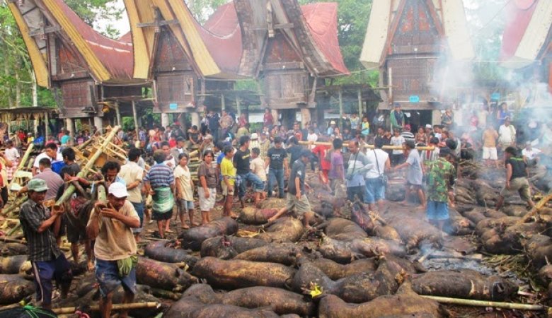 Jika ma'toratu yang tergolong kecil yaitu tamu itu hanya satu orang dan merupakan tamu dalam satu keluarga maka. hewan korbannya adalah seekor ayam. Yang tergolong menengah adalah tamu yang lebih dari satu orang yang merupakan tamu dalam satu keluarga maka hewan korban adalah ayam yang jumlahnya disesuaikan dengan jumlah orang yang dianggap patut mewakili sebagai yang dimuliakan (toratu). Sedangkan yang tergolong besar adalah tamu dalam satu komunitas masyarakat tertentu, apakah itu kampung, dusun atau desa maka hewan korbannya adalah hanya seekor babi. Kalaupun babi yang dipotong lebih dari satu ekor maka itu hanya dianggap sebagai lauk semata untuk menjamu orang yang terlibat atau hadir pada upacara, dengan kata lain hanya untuk memenuhi jumlah orang yang hadir pada jamuan saat itu.