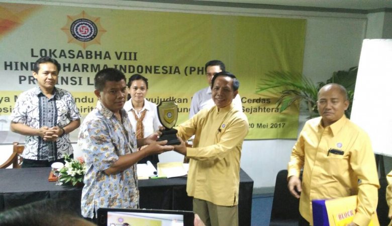 Galeri PHDI Ketua Bidang Organisasi, I Wayan Suyasa menyerahkan plakat penghargaan kepada Ketua PHDI Provinsi Lampung, I Nengah Maharta masa bhakti 2012-2017 (19/5/2017)