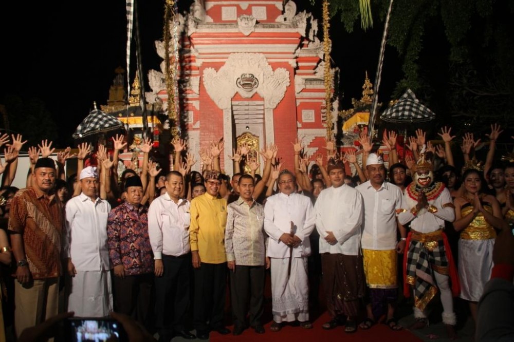 Palembang - Wakil Gubernur (wagub) Provinsi Sumatera Selatan (sumsel) H. Ishak Mekki, bersama jajarannya menghadiri perayaan Dharma Santhi Nyepi Caka 1938 tingkat Provinsi Sumatera Selatan tahun 2016, yang dilaksanakan di Madya Mandala Pura Agung Sriwijaya Palembang. Rabu, (23/3).
