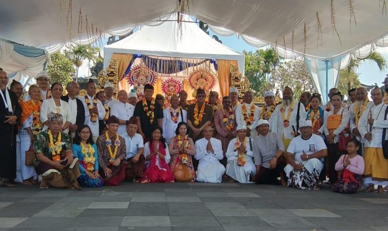 (Foto: Tokoh-tokoh Hindu berfoto bersama usai melaksakan doa serangkaian "Festival Kereta Sri Jagannatha Ratha Yatra Nusantara 2019)
