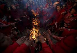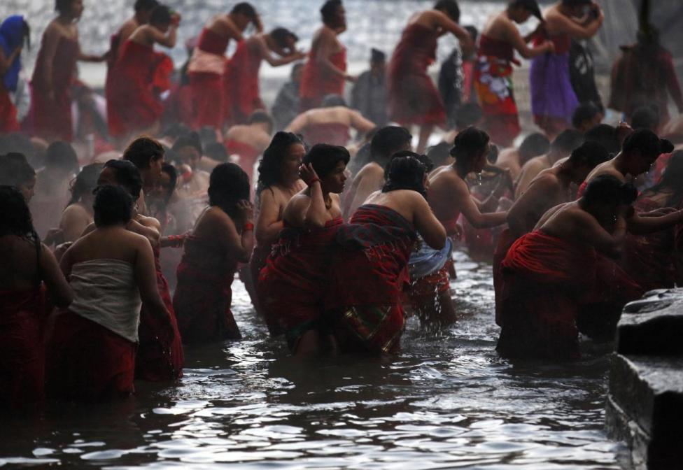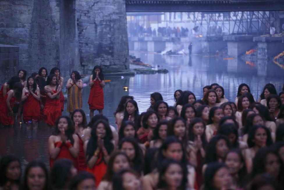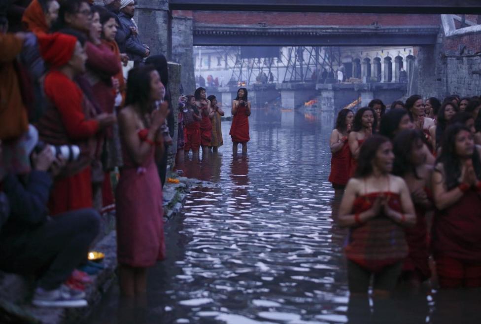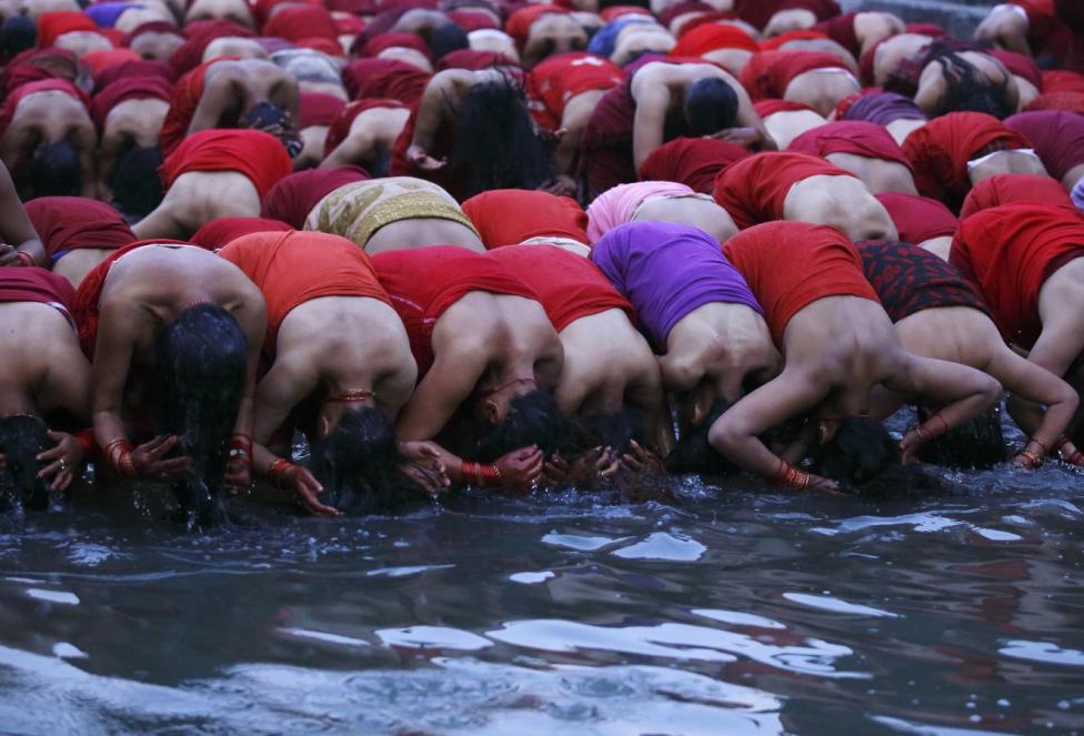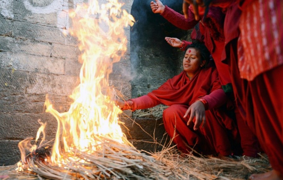 Nepal - Sejumlah wanita Hindu menggelar Swasthani Brata Katha di Kuil Pashupatinath, Kathmandu, Nepal, Senin (08/02/2016). Upacara yang berlangsung selama satu bulan tersebut juga mengharuskan umat untuk membaca kitab suci 31-bab dari Swasthani Brata Katha. Selain itu juga di gelar ritual ziarah ke berbagai kuil, mandi suci, serta melakukan puasa.