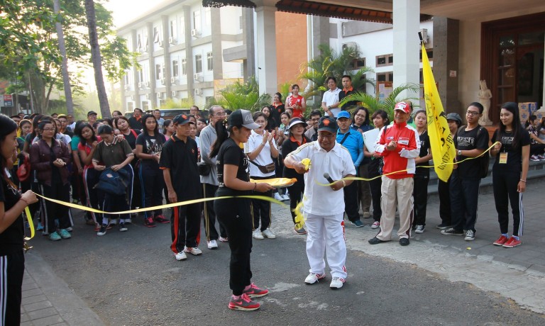 Denpasar - Dalam rangka DIes Natalis ke-53, WIsuda Sarjana dan Utsawa Bali Sani, Universitas Hindu Indonesia (Unhi) menggelar berbagai rangkaian acara. Sabtu (1/10) Unhi membuak rangkaian Dies Natalis dengan menggelar jalan santai yang melibatkan seluruh civitas akademika Unhi. Para peserta jalan santai dilepas Rektor Unhi Dr. Ida Bagus Dharmika, M.A dikampus Unhi Denpasar dan peserta melintas jalan Terengguli - Jalan Padma - Jalan Seroja - Gatsu Timur dan kembali ke kampus Unhi. Selain jalan santai, berbagai jenis kegiatan dan perlombaan juga dilakukan. Diataranya tarik tambang, lari karung, tenis meja, tenis lapangan, futsal Rektor Cup dan aksi sosial berupa donor darah.