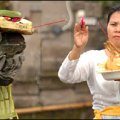 Posisinya cukup jauh ia hanya menonton upacara yajna yang dilaksanakan oleh Sang Srutasena atas perintah Maharaja Janamejaya. Ia menyadari dirinya kotor, tak patut mendekat ke kancah upacara besar itu, upacara yajna yang dilaksanakan di Kuruksetra.