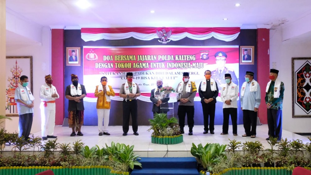 Palangkaraya - Mengusung tema satukan hati dan padukan diri dalam sinergi Covid-19, Kepolisian Daerah Kalimantan Tengah (Polda Kalteng) menggelar doa bersama lintas agama di Aula Arya Dharma Mapolda Kalteng, Rabu (20/05) sore.