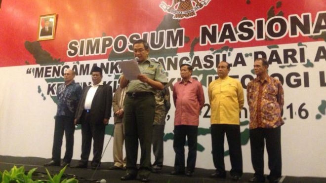 Rekomendasi simposium tersebut dibacakan di akhir acara oleh Wakil Ketua Umum Forum Komunikasi Putra Putri Purnawirawan TNI/POLRI Indonesia (FKPPI) pusat, Indra Bambang Utoyo di Balai Kartini, Jakarta Selatan, Kamis (2/5/2016).