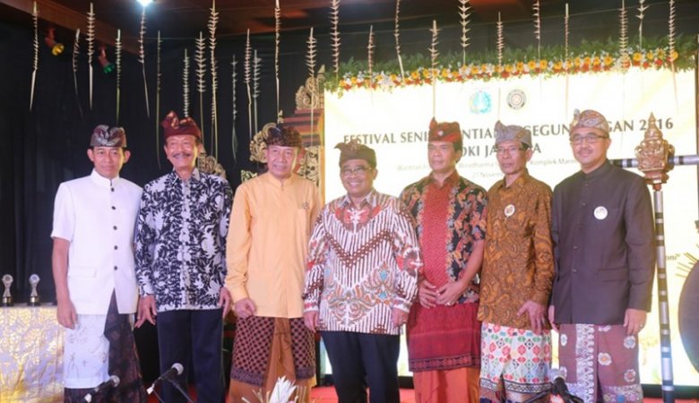 Galeri PHDI Plt Gubernur DKI Jakarta, Sumarsono bersama Ketua Umum PHDI Pusat Mayjen TNI (Purn) Wisnu Bawa Tenaya dan Panitia Festival Pesantian-Geguntangan V